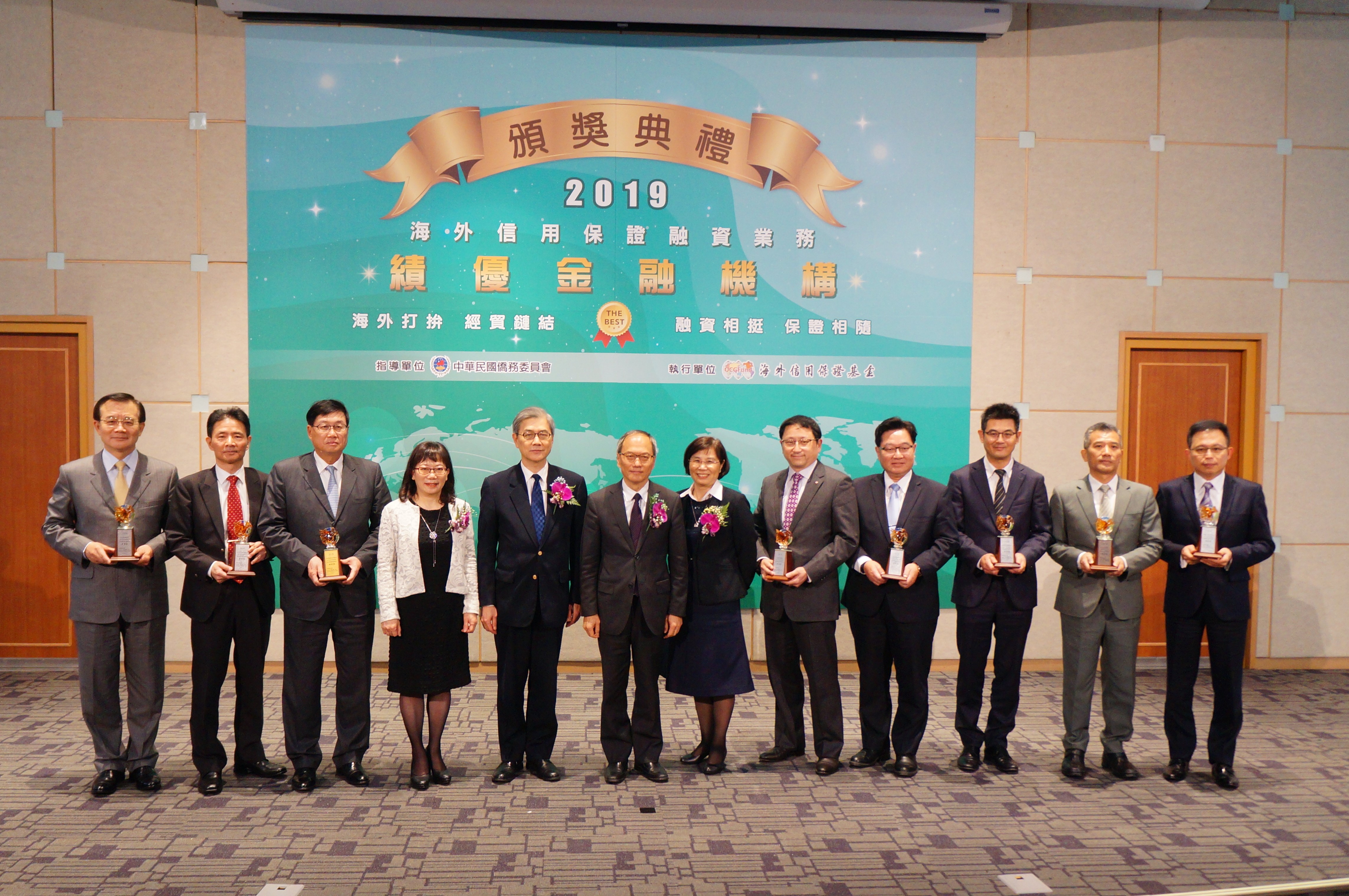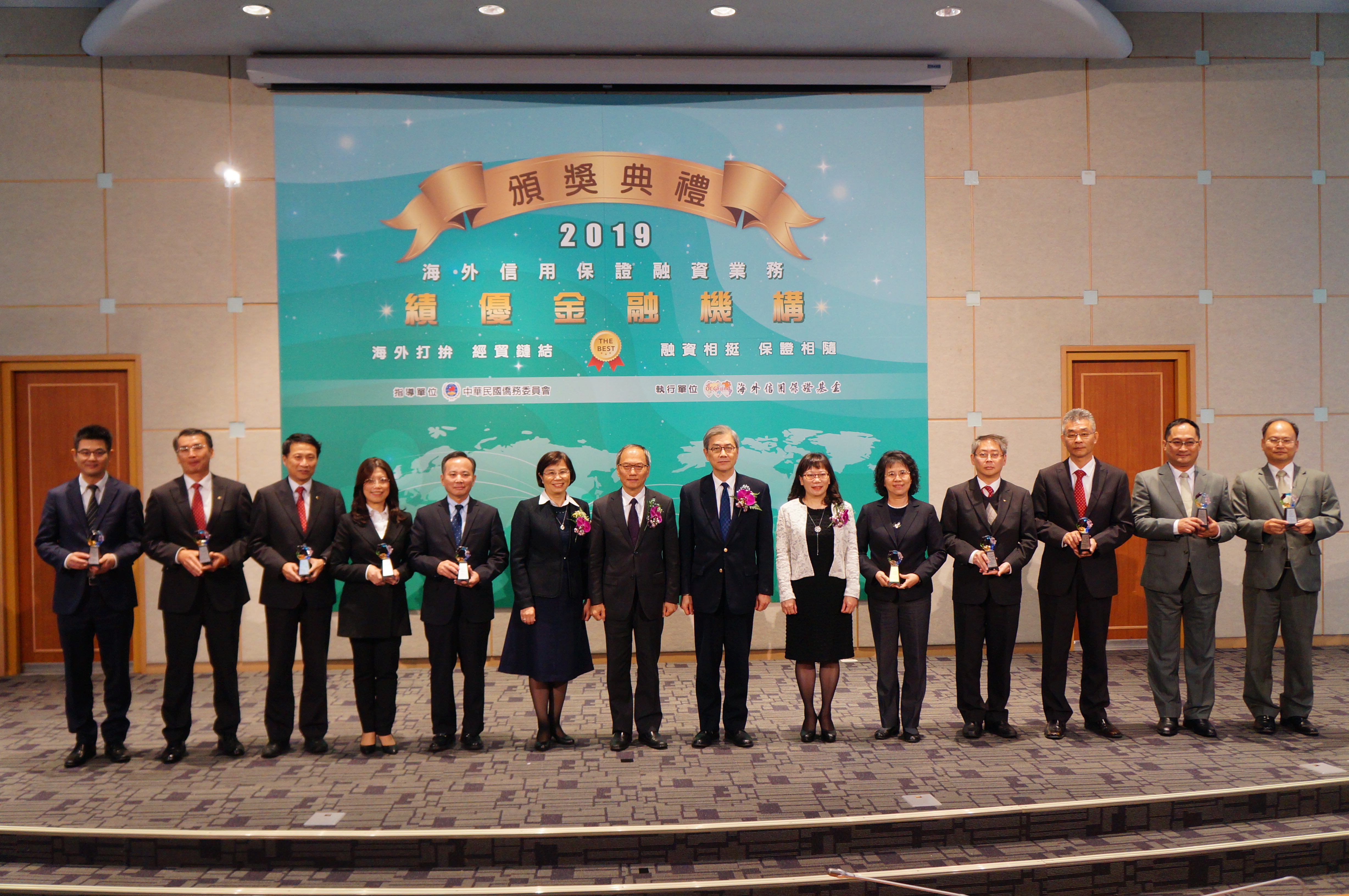 海外信用保證基金(4)日舉行「績優金融機構頒獎典禮」,表揚積極運用信保,協助海外僑臺商拓展事業之優秀合作夥伴。僑務委員會委員長吳新興、金融監督管理委員會副主任委員黃天牧及行政院經貿談判辦公室副總談判代表楊珍妮擔任頒獎人,並邀請泰國臺商林明篁、柬埔寨臺商黃清華等出席見證。