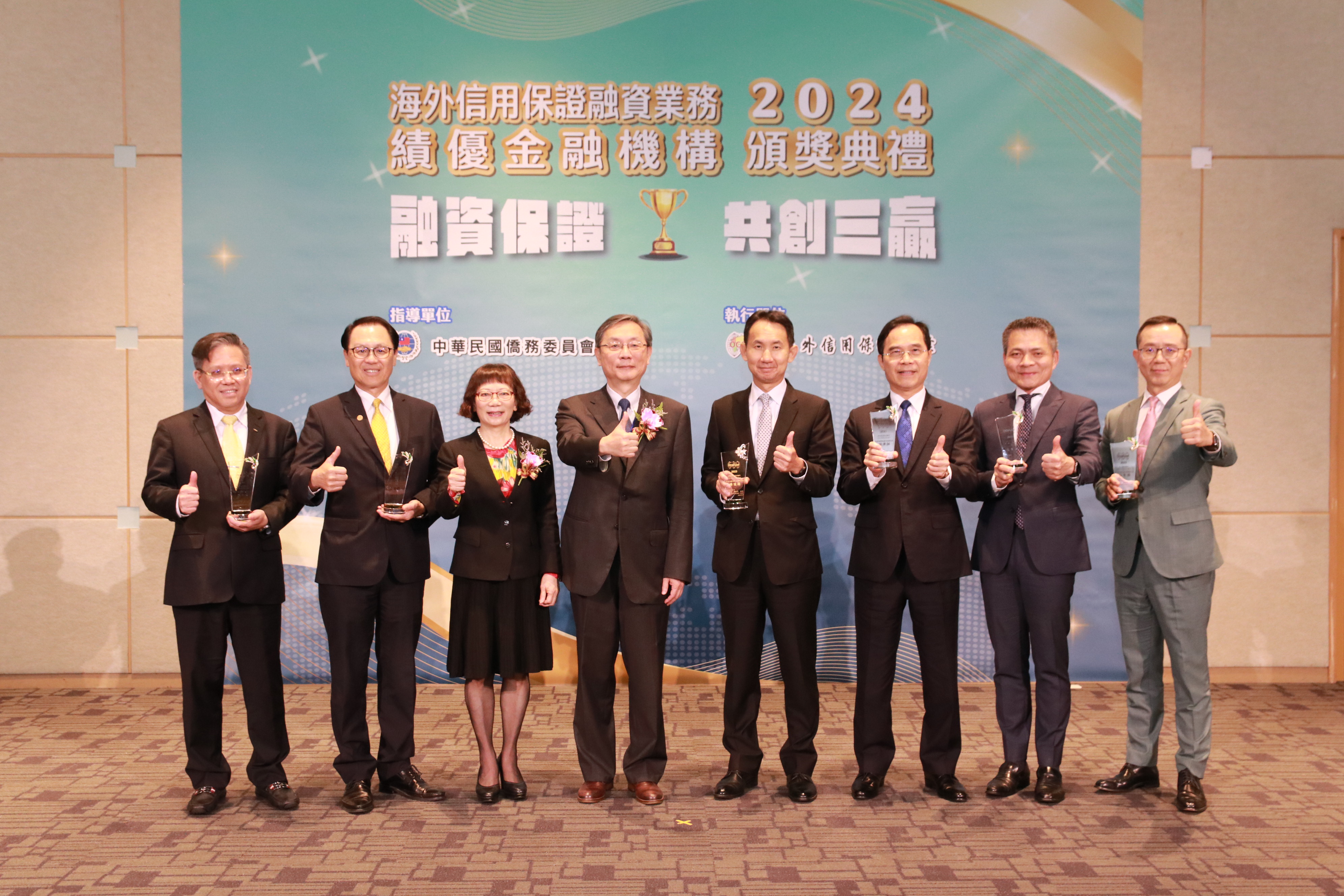 海外信用保證基金於(14)日舉行「112年度績優金融機構頒獎典禮」,計有11家銀行獲獎,邀請僑務委員會委員長徐佳青、金融監督管理委員會主秘蔡福隆及行政院經貿談判辦公室談判代表張煜霖擔任頒獎人,並有來自泰國、印尼及越南之臺商出席見證。